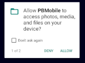 Note: this may show as Make and Manage phone calls, PBMobile does not and will not access your details, contacts or any personal information.