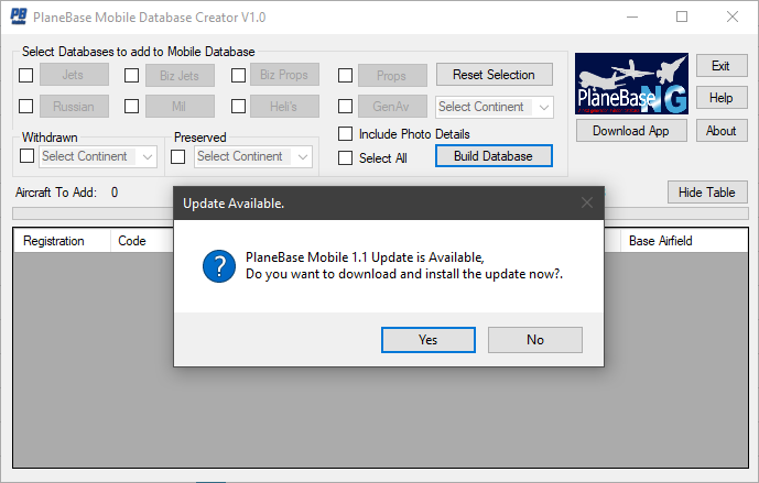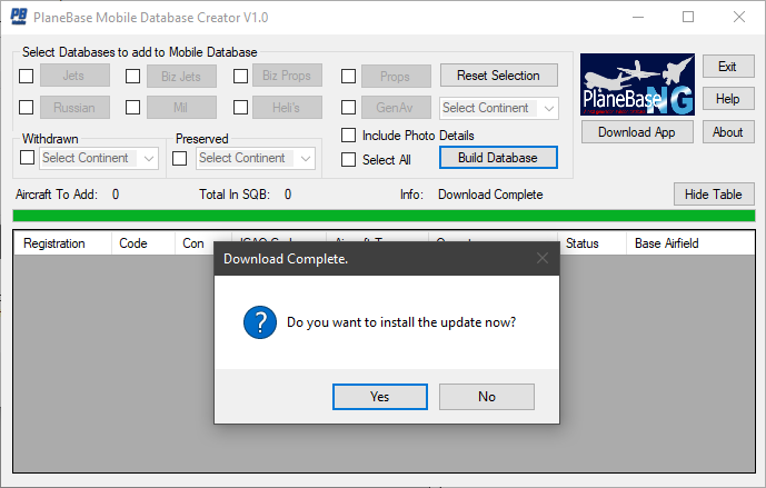 Note: You will only see the update alert in the app if you have built a new PBData.sqb with a newer version of PBDC than the app.