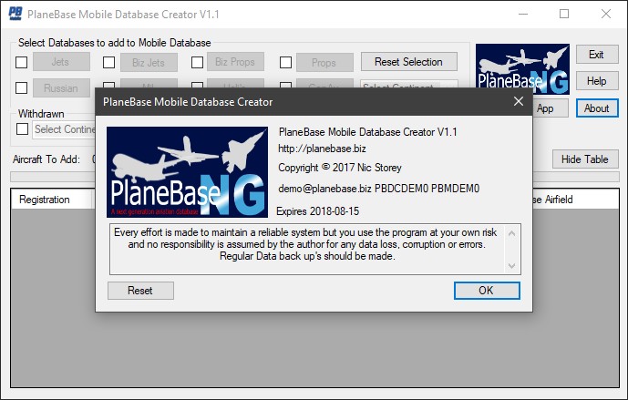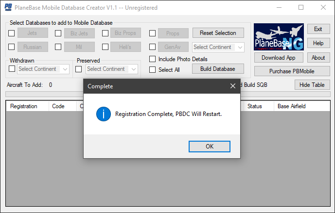 Now click here to build your PlaneBase Mobile Database