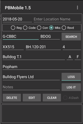 Note: If PlanePlotter Mobile is used and you log as other marks then the current Reg will be used to update the Basestation.sqb used with PlanePlotter Mobile.