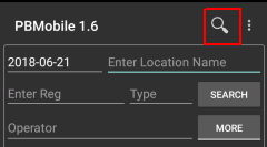 The Search Button shown above is a dual function button a single press will search for the entered registration a long press will search for a part registration.