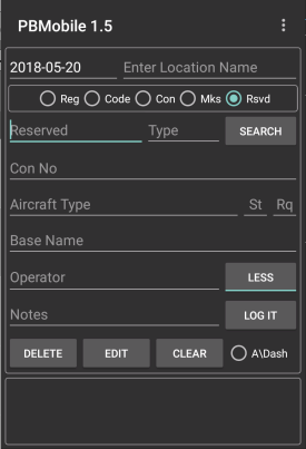Note: If PlanePlotter Mobile is used and you log a Reserved Reg then the current Reg in PlaneBase will be used to update the Basestation.sqb used with PlanePlotter Mobile.