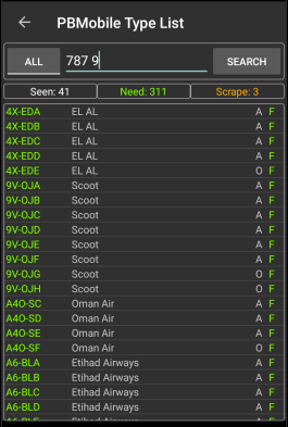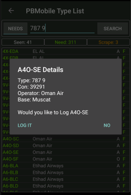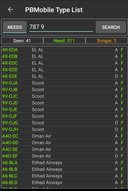 NOTE the pending count is not included in the Seen, Need and Scrape counts as the aircraft is not truly logged until imported into the main PlaneBase program.