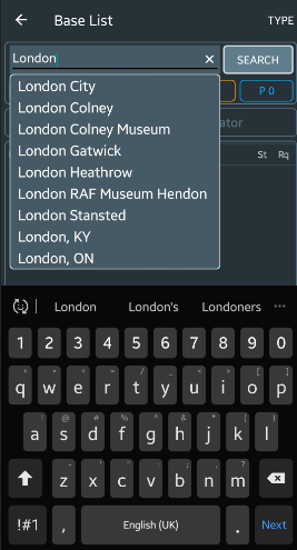 If you Enter 'London' and long press the search button then the list will populate with all aircraft found that the base location starts with London, so London Heathrow, London Gatwick etc.
