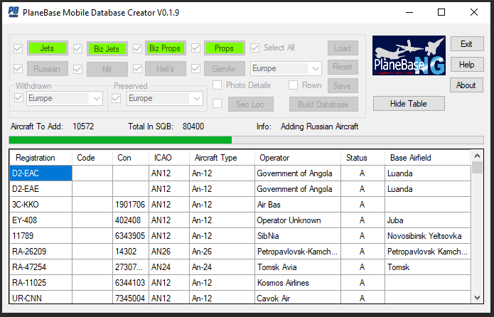 When you have selected the required databases press the Build Database button and allow time for the database to be built.