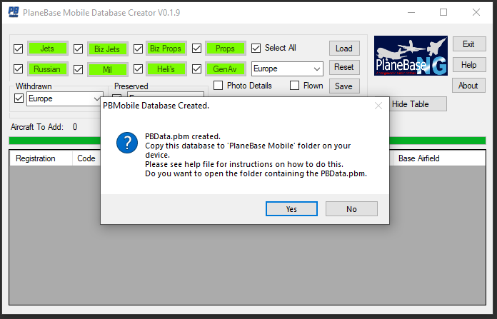 Once the PBData.pbm has been built you have the option of opening the folder containing the PBData.pbm by clicking 'Yes' in the message box shown below.
