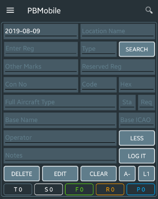 Long press will clear the text boxes and also the results list below which will then show any aircraft logged.