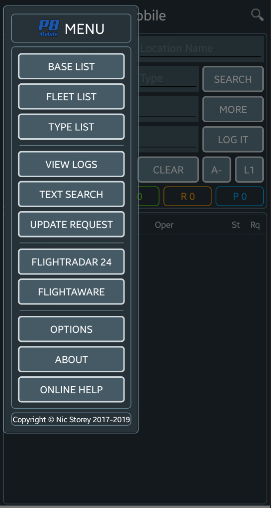 Opens the Flight Radar24 webpage with details of current selected registration.