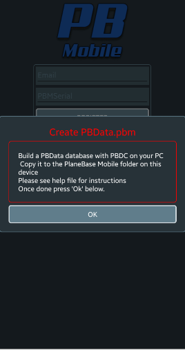Once you have copied the PBData.pbm to your device you need to enter your registered email address and PBMSerial number and press register.
