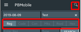 Select an option to search for and the Registration box placeholder text will change to show what is selected. (You use the Registration box to search for details)